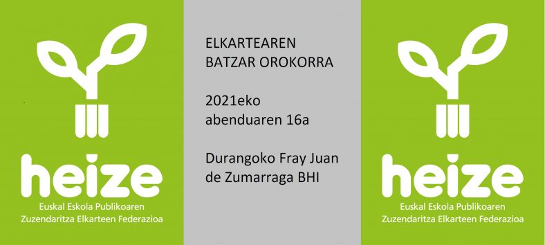 HEIZE elkartearen BATZAR NAGUSIrako deialdia EGUNA: Abenduak 16 (osteguna) LEKUA: Fray Juan de Zumarraga BHI (Durango) ORDUA: 10:00 MODUA: Presentziala BERTARATZE GALDETEGIA: https://forms.gle/kwBRkTBgsWqaj6PX6 GAI-ORDENA eta DENBORALIZAZIOA 10:00etatik 11:30etara HEIZE elkarteko presidentearen hitzartzea Batzar Orokorraren […]