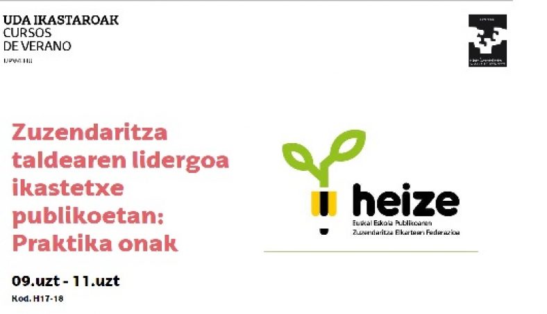 Aurtengo www.uik.eus ikastaroetan HEIZE elkarteak zeregin berezia izango du uztailaren 9-10 eta 11ean. “Zuzendaritza taldeen lidergoa eskola publikoan” izeneko ikastaroarekin. Izenemate murriztua egin ahal izateko deialdia irekia dago maiatzaren 31a bitarte. Ondoren ohiko izenematea izango du.